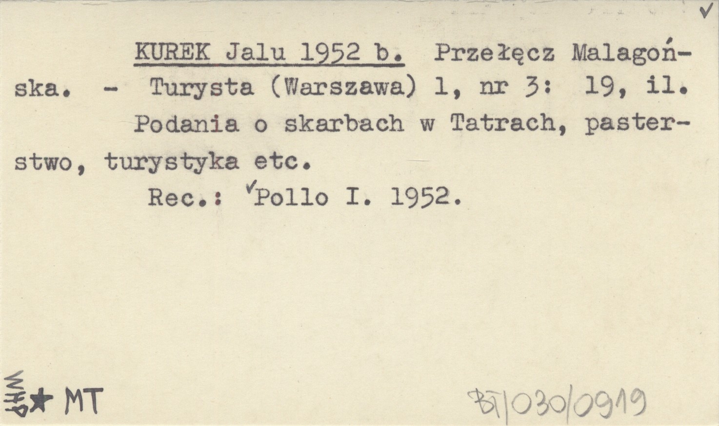 Turysta (Warszawa) , 1, nr 3: 19, il. Podania o skarbach w Tatrach, pasterstwo, turystyka etc. REC: POLLO I. 1952