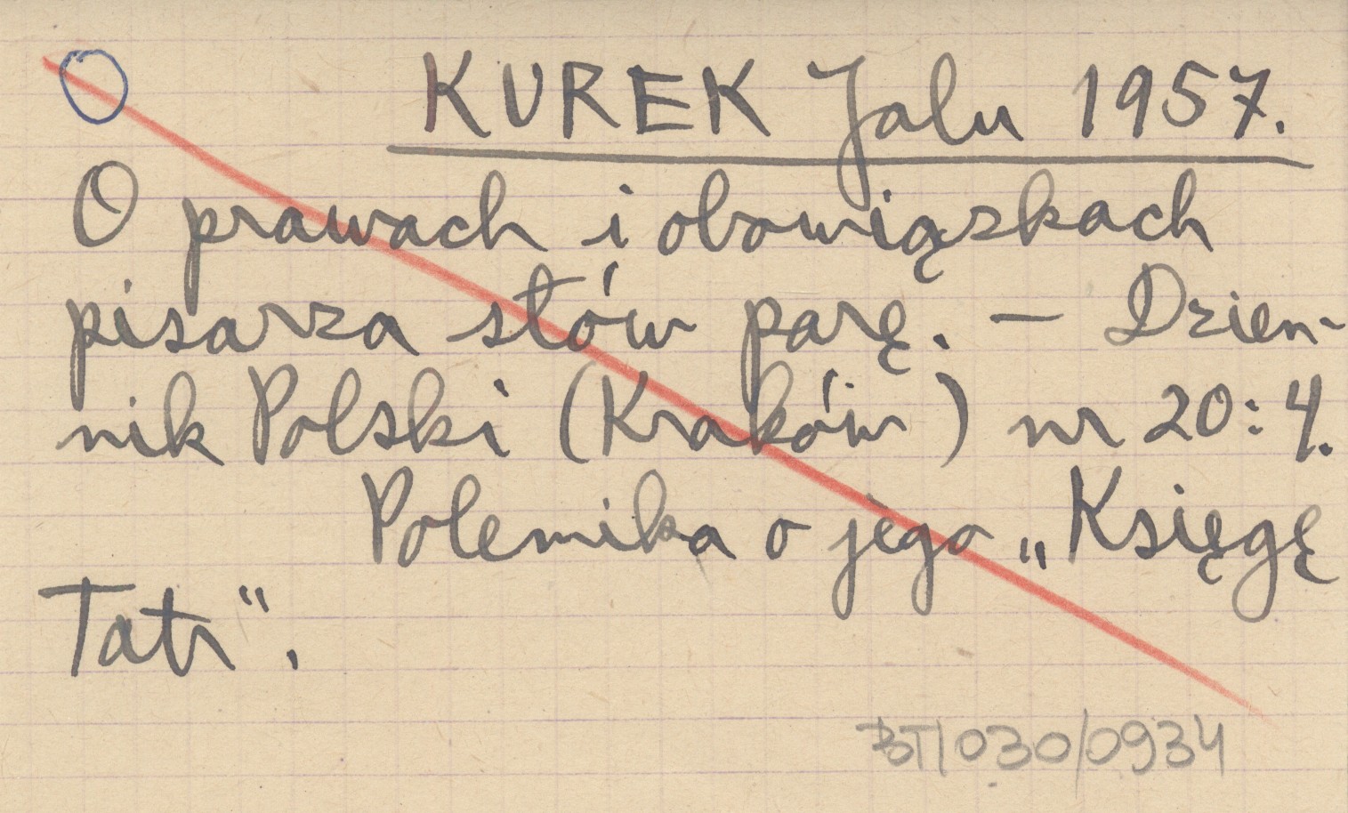 KUREK Jalu 1957 O prawach i obowiązkach pisarza słów parę.