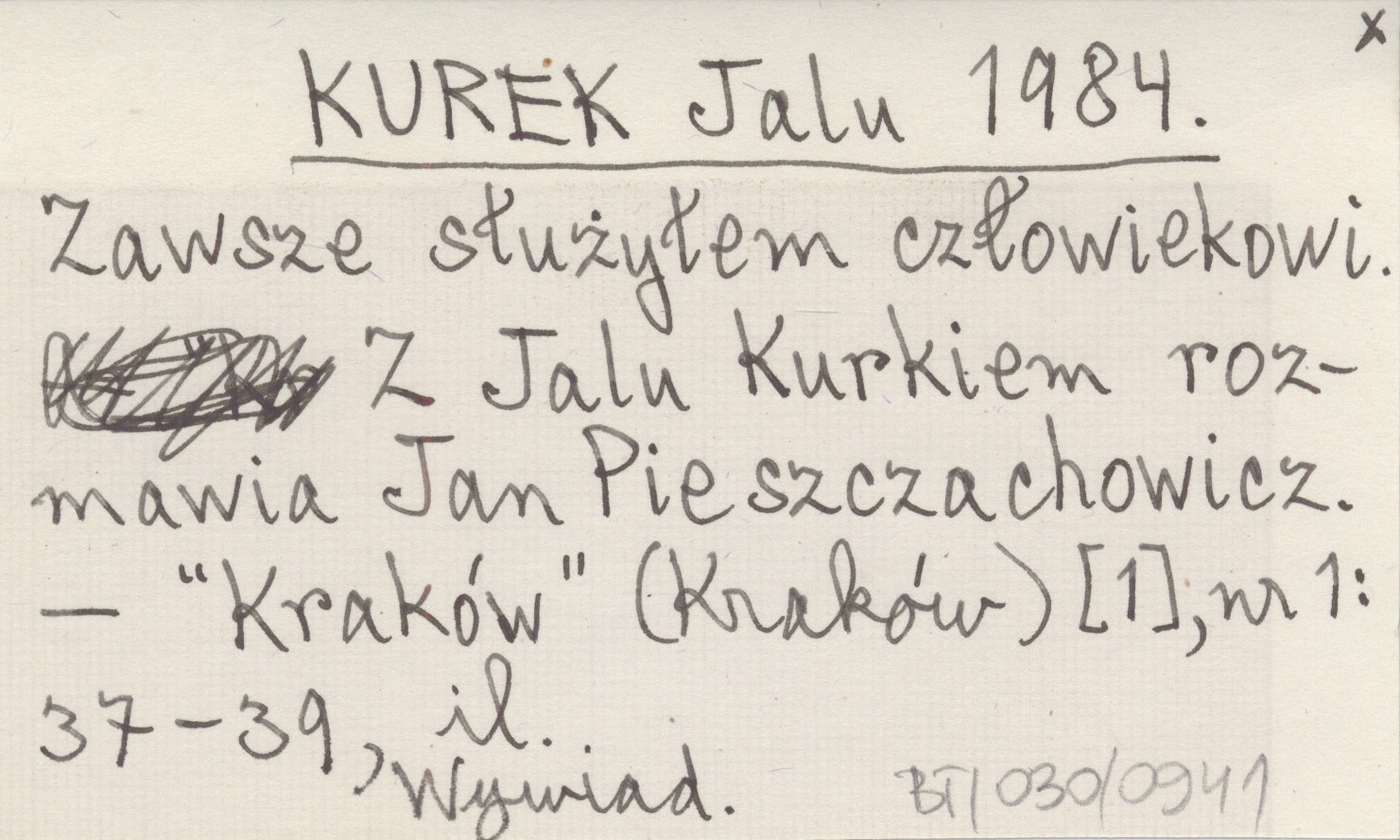 KUREK Jalu 1984 Zawsze służyłem człowiekowi. Z Jalu Kurkiem rozmawia Jan Pieszczachowicz.