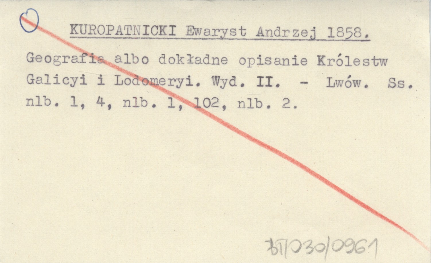 KUROPATNICKI Ewaryst Andrzej 1858 Geografia albo dokładne opisanie Królestw Galicyi i Lodomeryi.