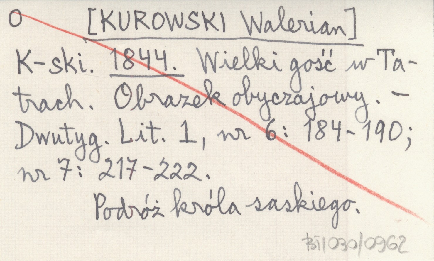 K-ski. [KUROWSKI Walerian] 1844 Wielki gość w Tatrach. Obrazek obyczajowy.