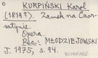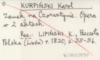 KURPIŃSKI Karol Zamek na Czorsztynie. Opera w 2 aktach.