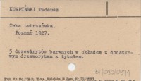 KURPIŃSKI Tadeusz 1927 Teka tatrzańska.