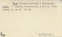 Kurs klimatologiczny w Zakopanem. 1952