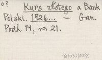 Kurs złotego a Bank Polski. 1926...