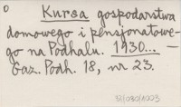 Kursa gospodarstwa domowego i pensjonatowego na Podhalu. 1930...