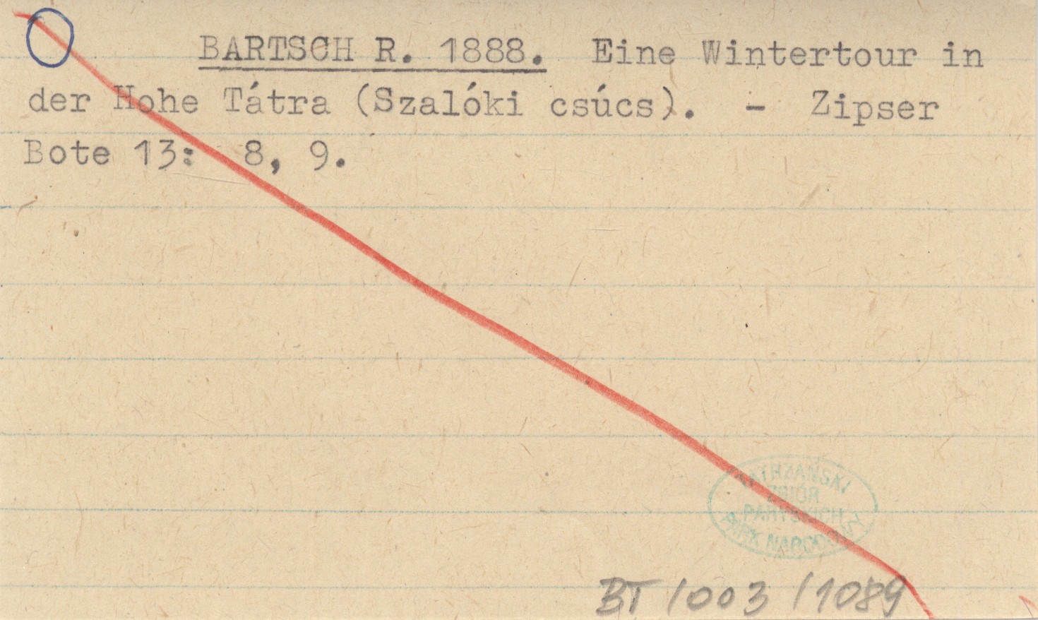 BARTSCH R. 1888 Eine Wintertour in der Hohe Tátra (Szalóki csúcs).