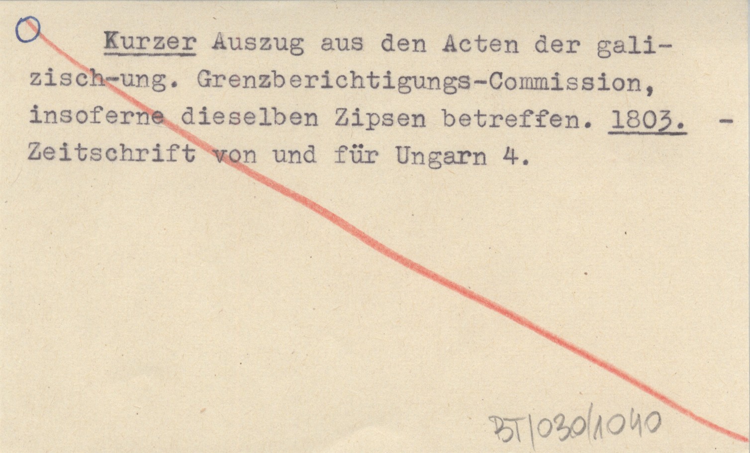 Kurzer Auszug aus den Acten der galizisch-ung. Grenzberichtigungs-Commission, insoferne dieselben Zipsen betreffen. 1803