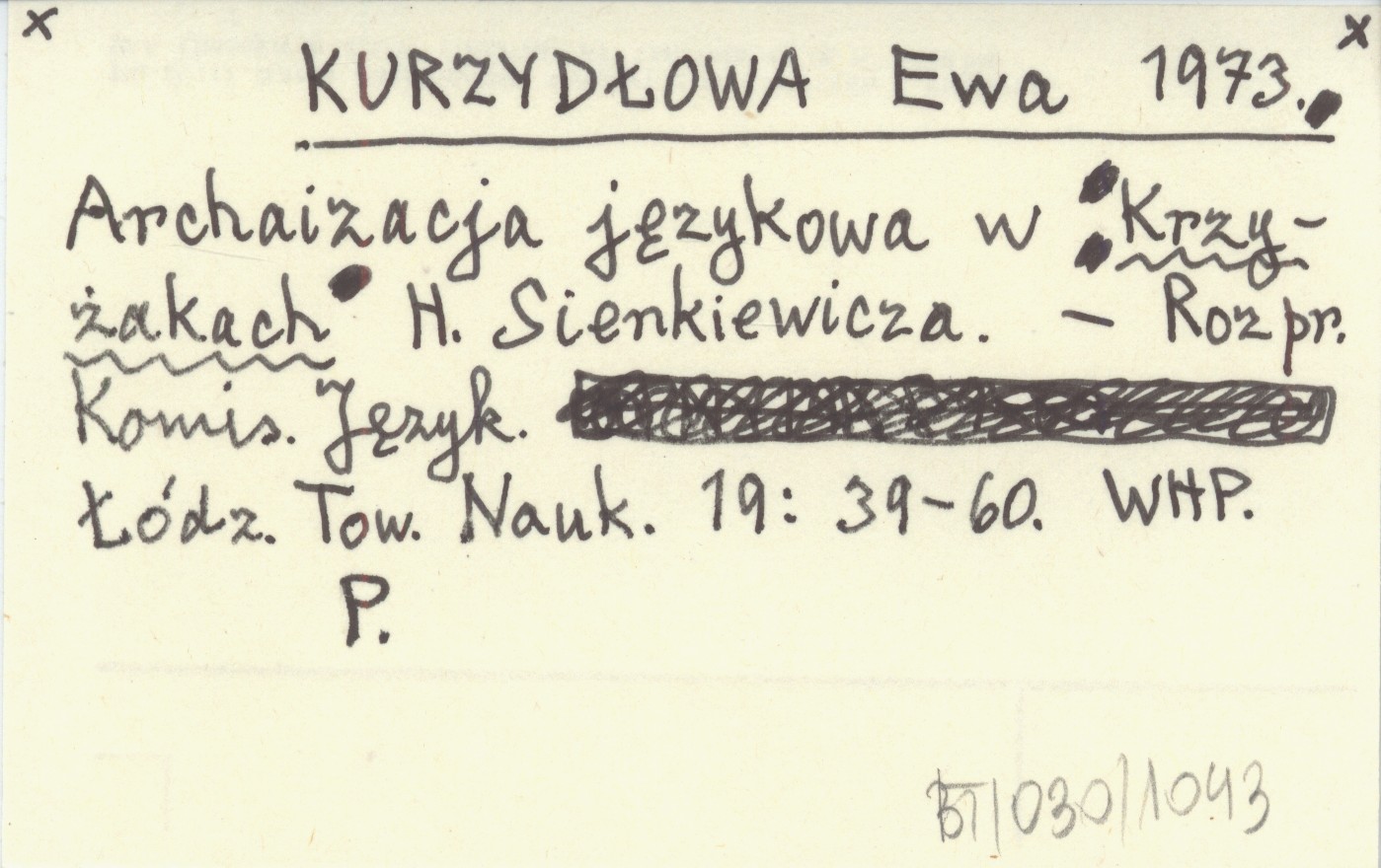 KURZYDŁOWA Ewa 1973 Archaizacja językowa w Krzyżakach H. Sienkiewicza.