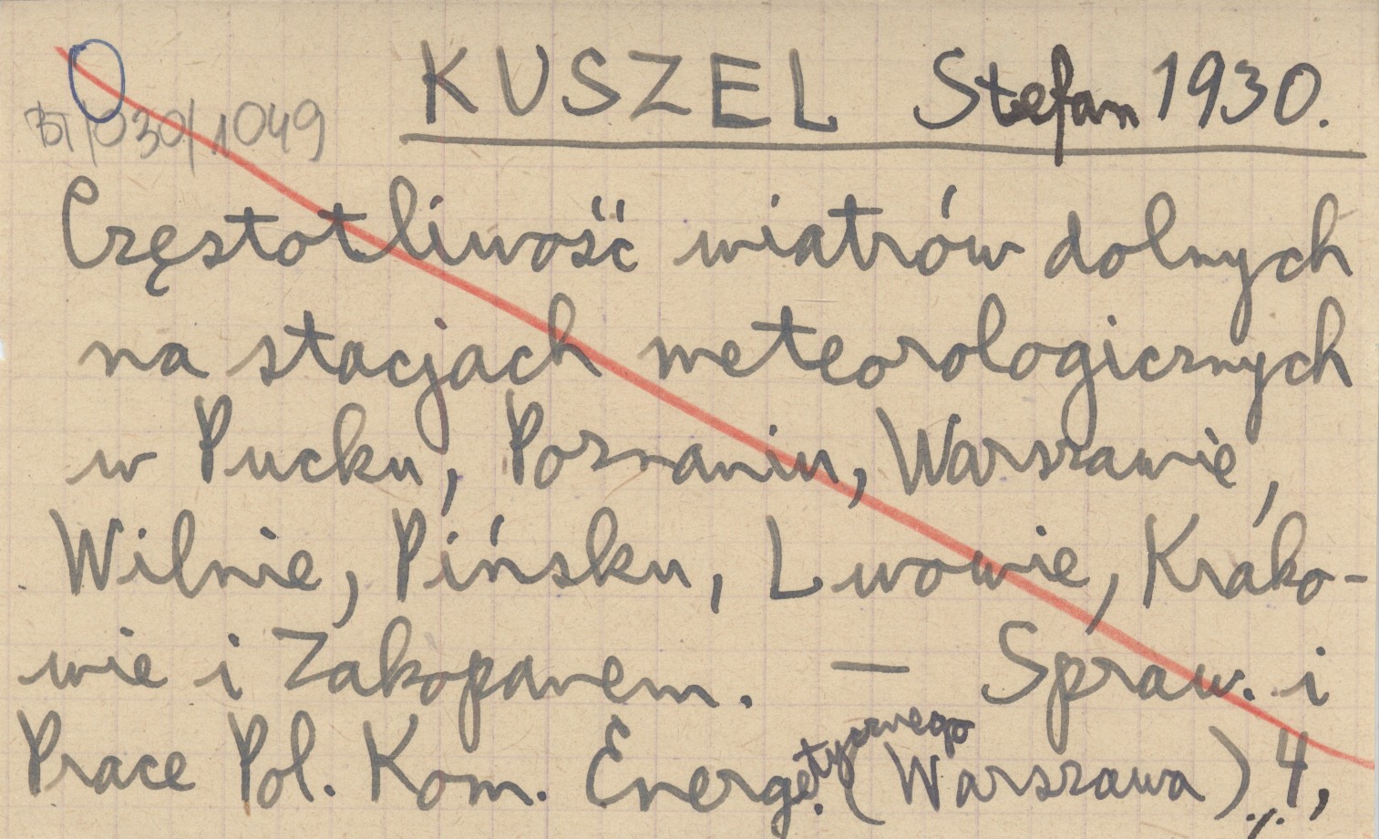 KUSZEL Stefan 1930 Częstotliwość wiatrów dolnych na stacjach meteorologicznych w Pucku, Poznaniu, Warszawie, Wilnie, Pińsku, Lwowie, Krakowie i Zakopanem.