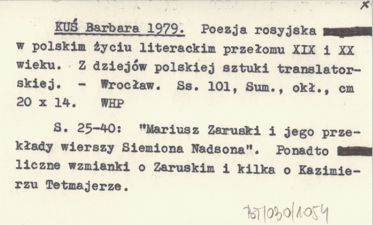 KUŚ Barbara 1979 Poezja rosyjska w polskim życiu literackim przełomu XIX i XX wieku. Z dziejów polskiej sztuki translatorskiej.