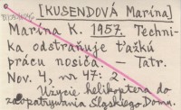 Marína K. [KUSENDOVÁ Marína] 1957 Technika odstraňuje ťažkú prácu nosiča.