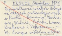 KUSZEL Stanisław 1934 Częstotliwość wiatrów dolnych na stacjach meteorologicznych w Pucku, Poznaniu, Warszawie, Wilnie, Pińsku, Lwowie, Krakowie i Zakopanem.