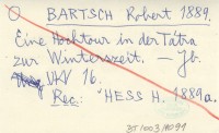BARTSCH R. 1888 Eine Wintertour in der Hohe Tátra (Szalóki csúcs).