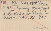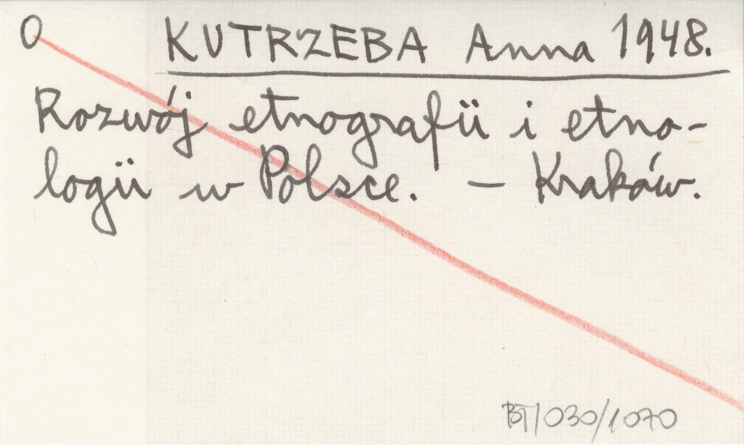 KUTRZEBA Anna 1948 Rozwój etnografii i etnologii w Polsce.