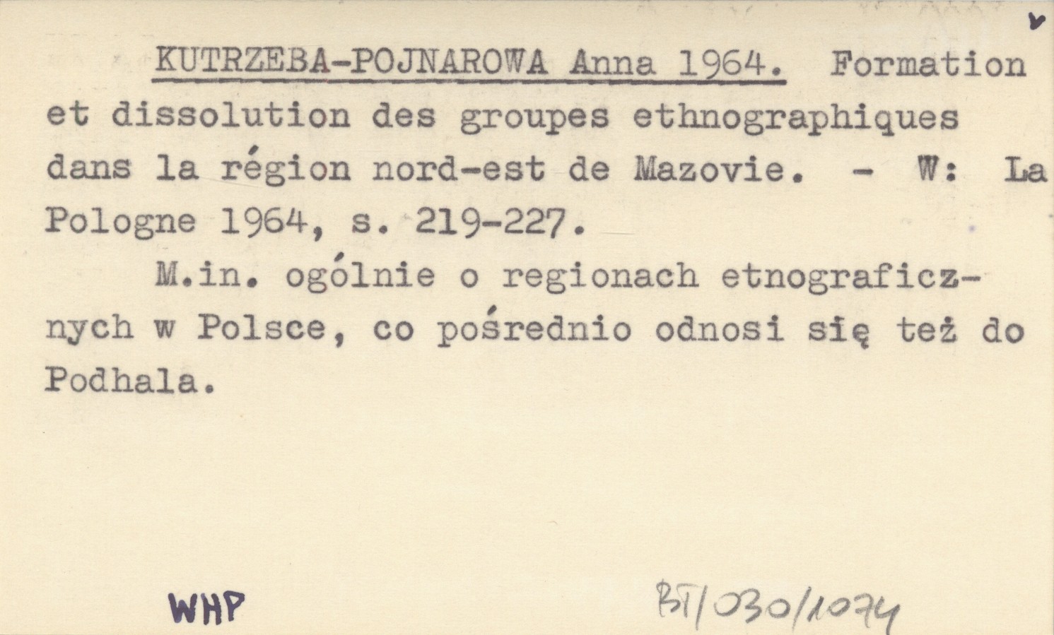 KUTRZEBA-POJNAROWA Anna 1964 Formation et dissolution des groupes ethnographiques dans la région nord-est de Mazovie.