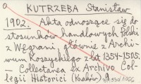 KUTRZEBA Stanisław 1902 Akta odnoszące się do stosunków handlowych Polski z Węgrami, głównie z Archiwum Koszyckiego z lat 1354-1505,