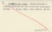 KUTRZEBA St. 1903 Handel Krakowa w wiekach średnich na tle stosunków handlowych Polski.