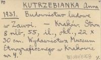 KUTRZEBIANKA Anna 1931 Budownictwo ludowe w Zawoi.