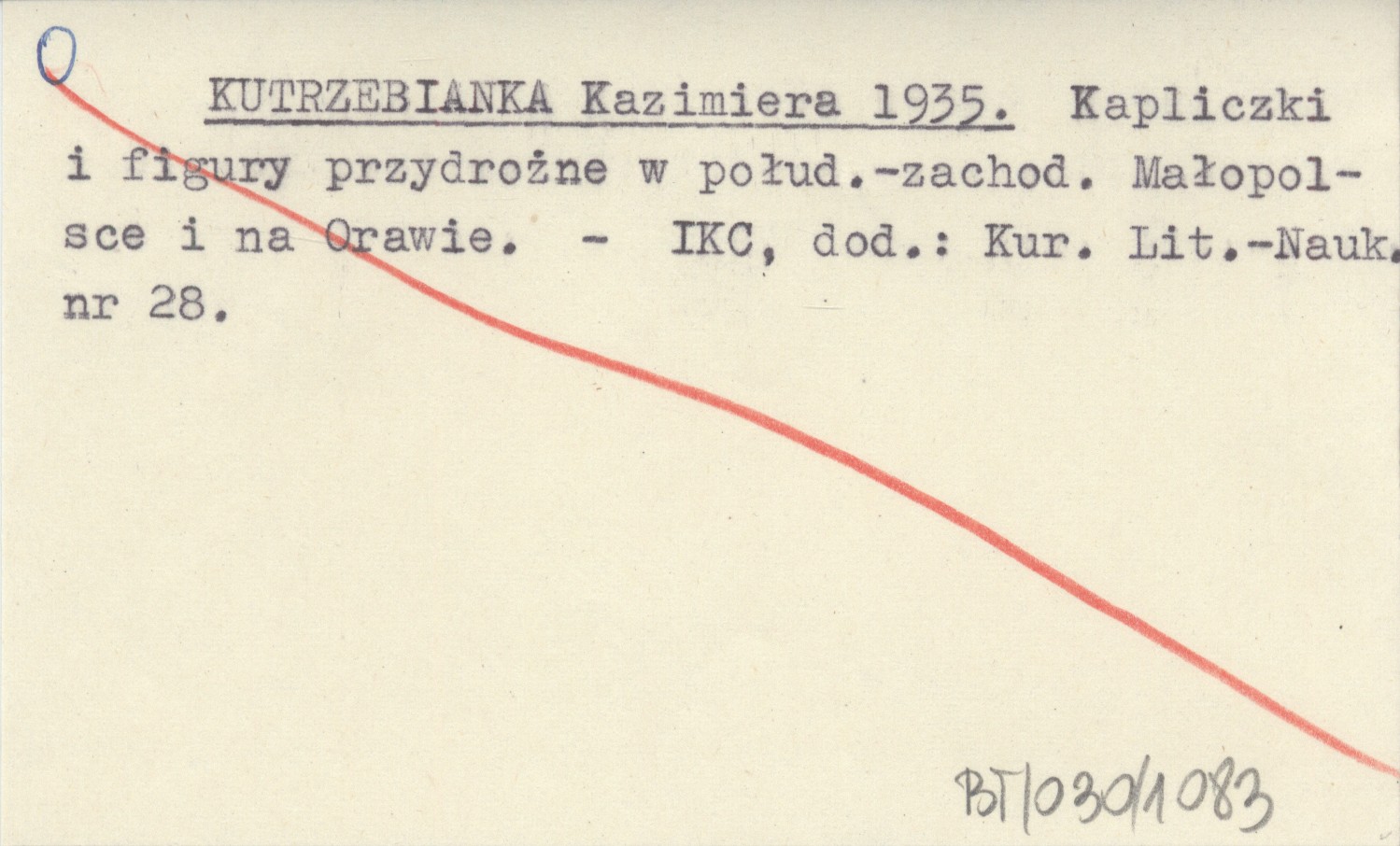 KUTRZEBIANKA Kazimiera 1935 Kapliczki i figury przydrożne w połudn.-zachod. Małopolsce i na Orawie.