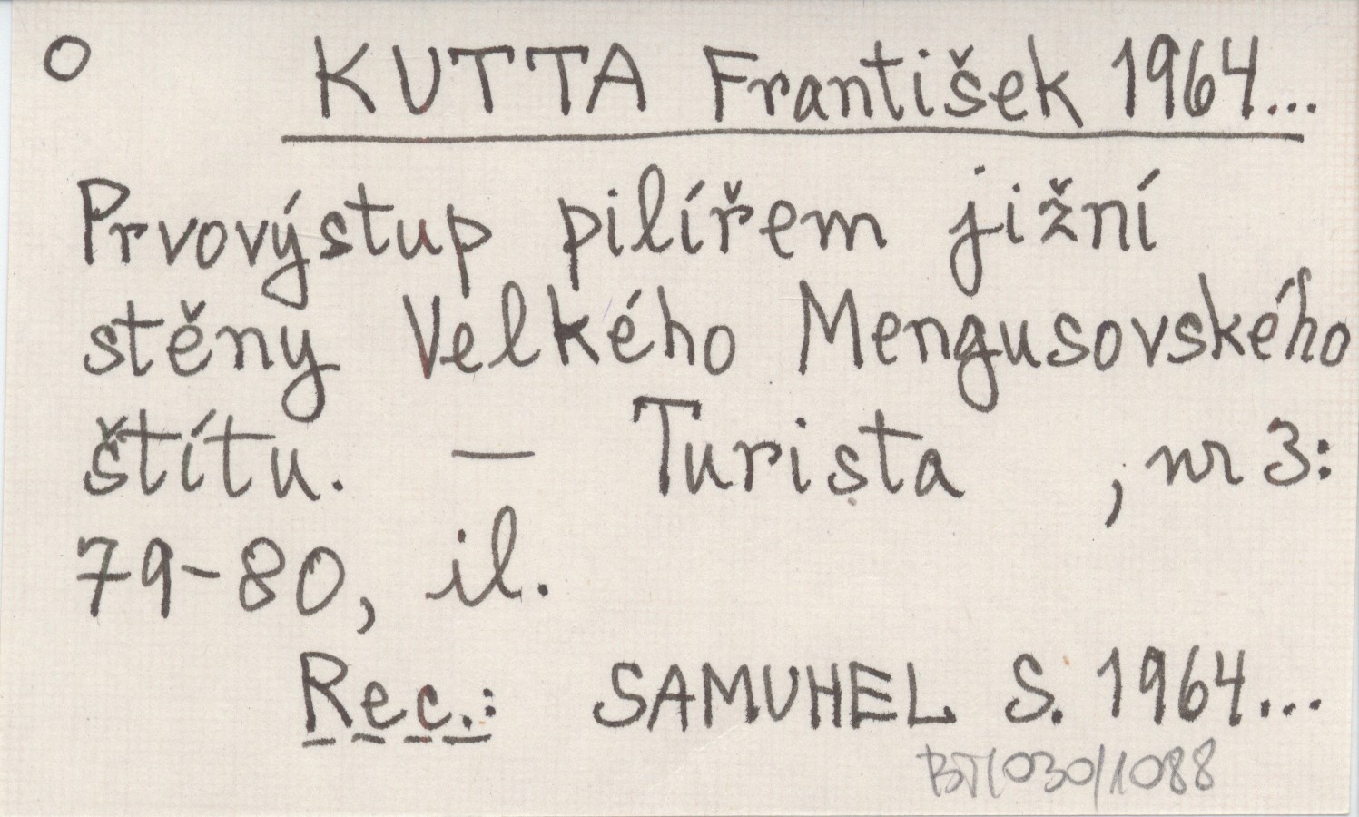 KUTTA František 1964... Prvovýstup pilířem jižní stěny Velkého Mengusovského štítu.