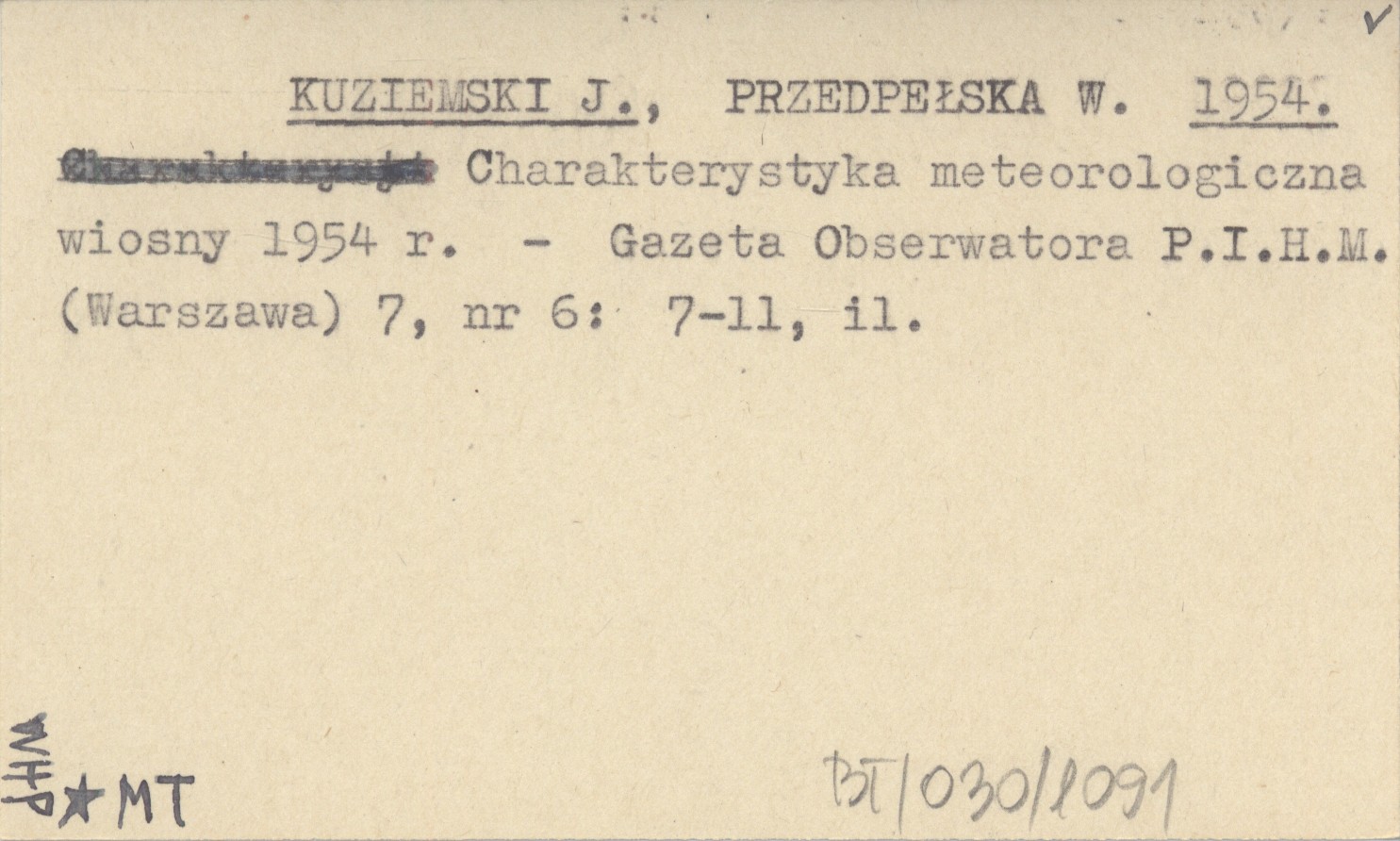 KUZIEMSKI J. PRZEDPEŁSKA, W. ; 1954 Charakterystyka meteorologiczna wiosny 1954 r.