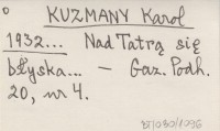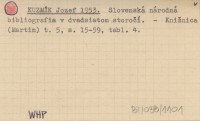 KUZMÍK Jozef 1953 Slovenská národná bibliografia v dvadsiatom storočí.