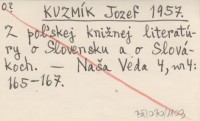 KUZMÍK Jozef 1957 Z poµskej kniľnej literatúry o Slovensku a o Slovákoch.