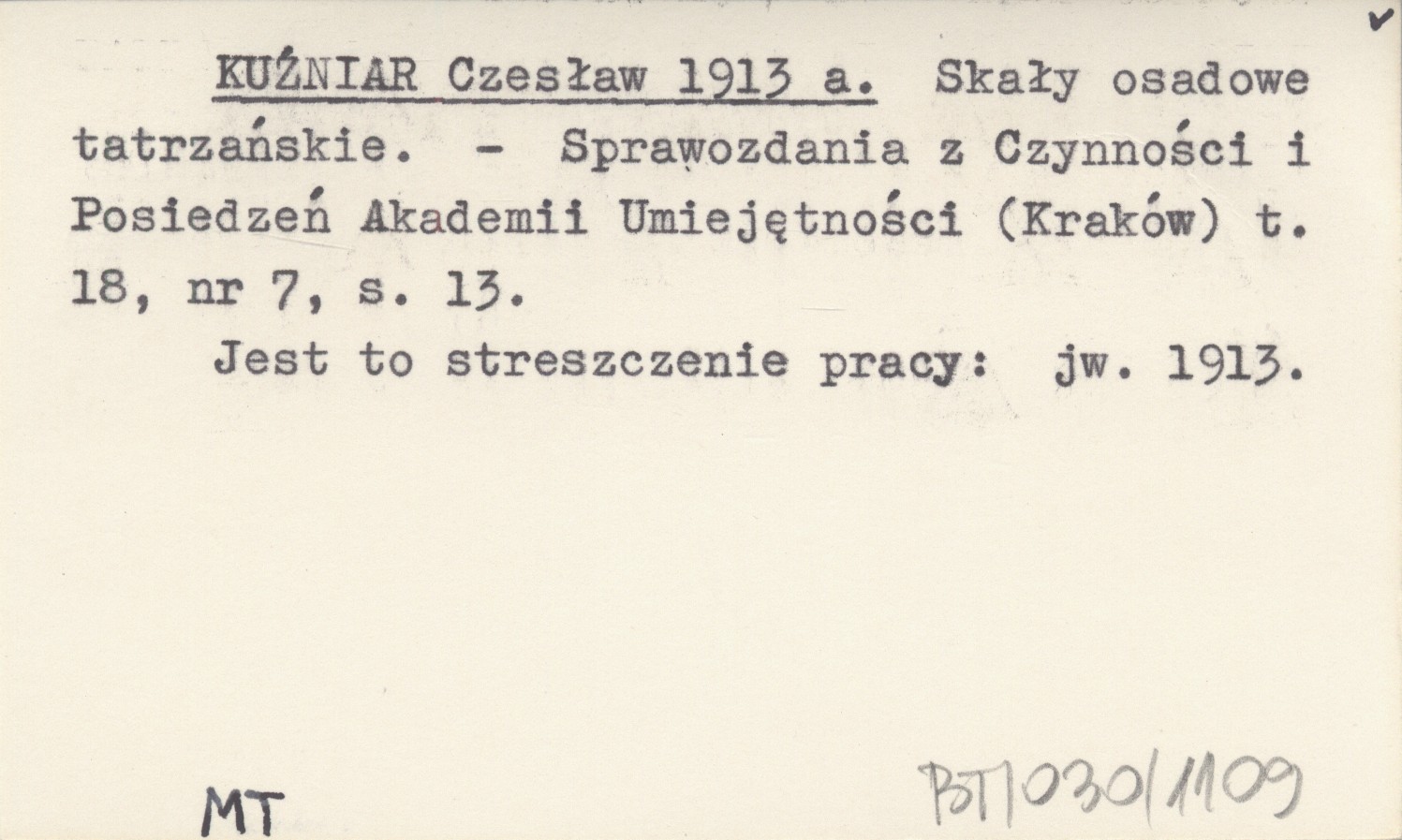 Sprawozdania z Czynności i Posiedzeń Polskiej Akademii Umiejętności (Kraków) , T. 18, nr 7: 13. Jest to streszczenie pracy: jw. 1913