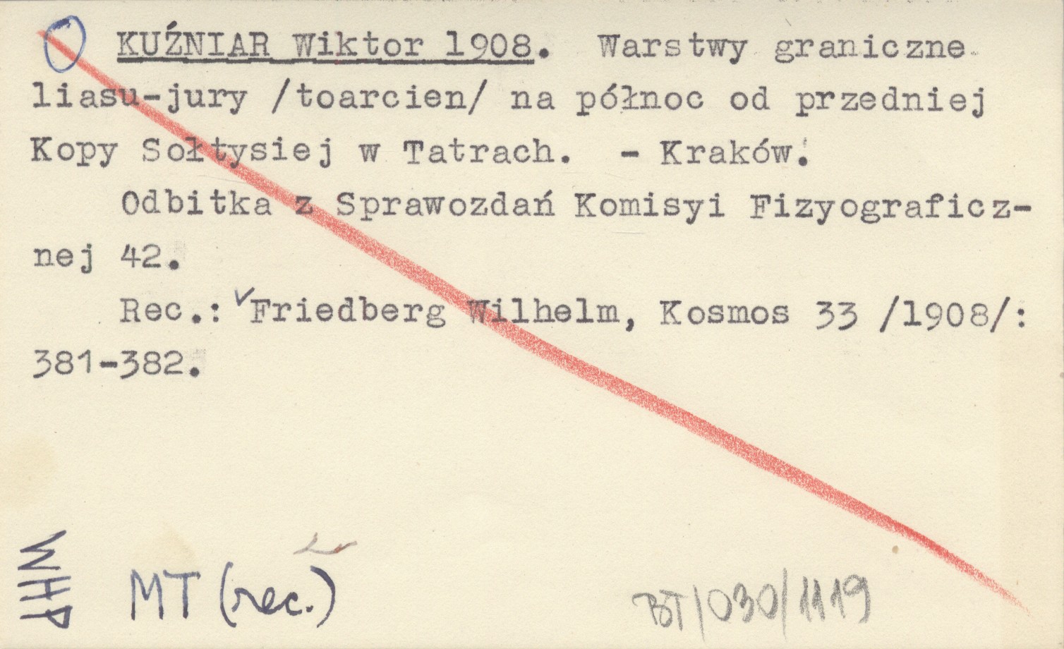 Kraków , Odbitka z Sprawozdań Komisyi Fizyograficznej 42. REC: FRIEDBERG Wilhelm, Kosmos 33 (1908): 381-382.