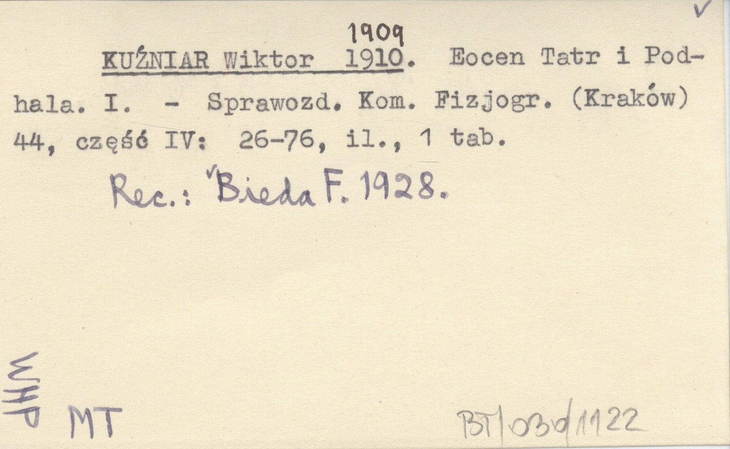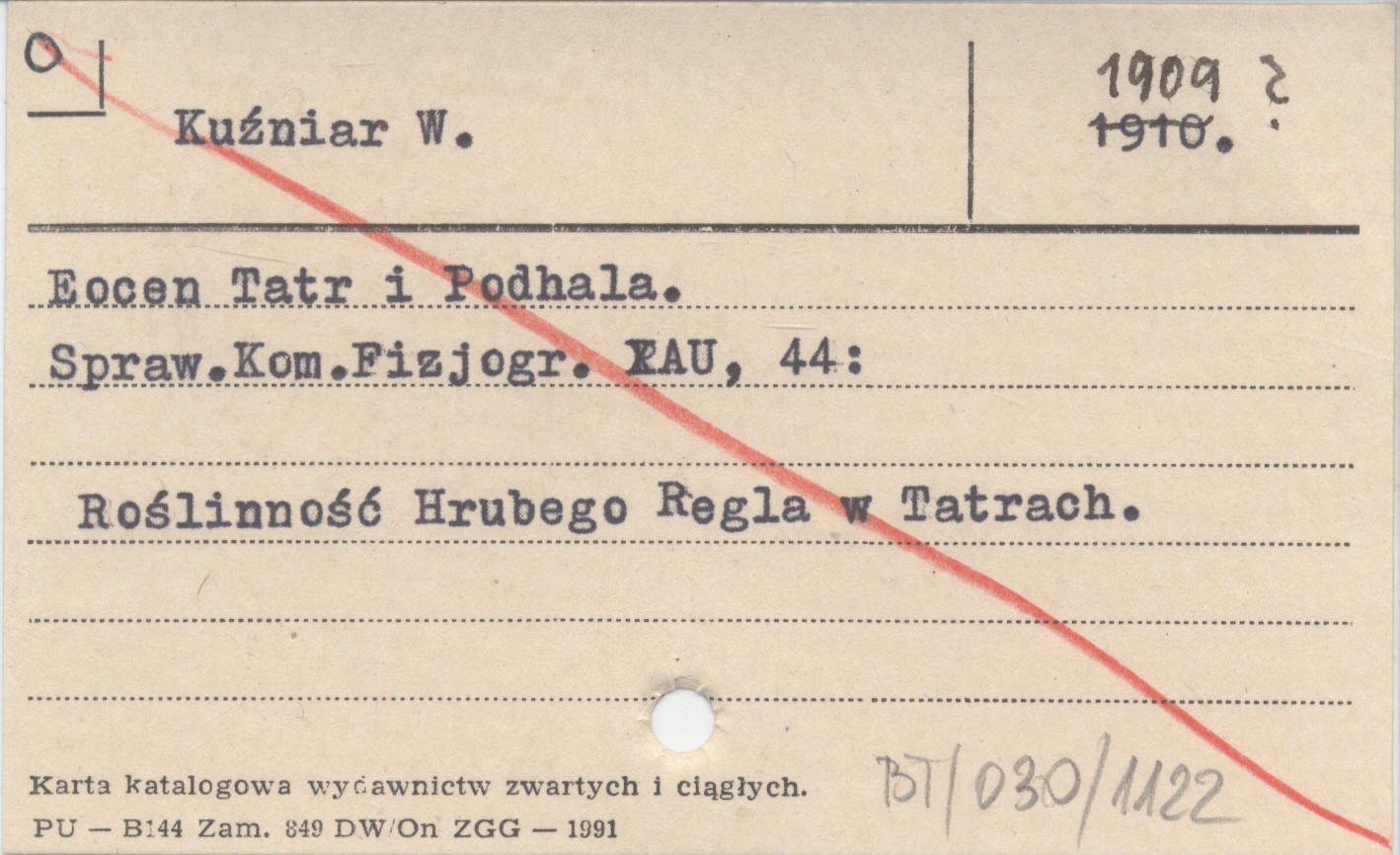 Sprawozdanie Komisji Fizjograficznej (Kraków) , 44, cz. IV: 26-76, il., 1 k. Roślinność Hrubego Regla w Tatrach. REC: BIEDA F. 1928