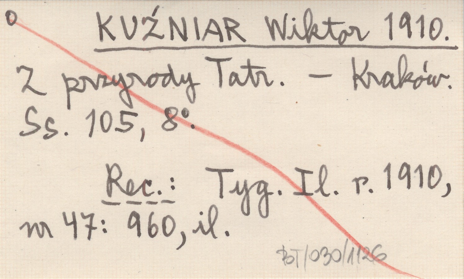 Kraków , 105 s., 8°. REC: Tygodnik Illustrowany r. 1910, nr 47: 960, il. ; [GOETEL Walery] W., Taternik (Lwów) 4 (1910), nr 6: 138 ; GADOMSKI A. 1936 a ; GOETEL W. 1935 ; KULWIEĆ K. Książka (Warszawa) 11 (1911), nr 1: 6-7 ; [KULWIEĆ K.] K. K-ć., Ziemia (Warszawa) 1 (1910), nr 51: 813-814 ; Biblioteka Warszawska (Warszawa) 1911, t. 2 (282): 203 ;
