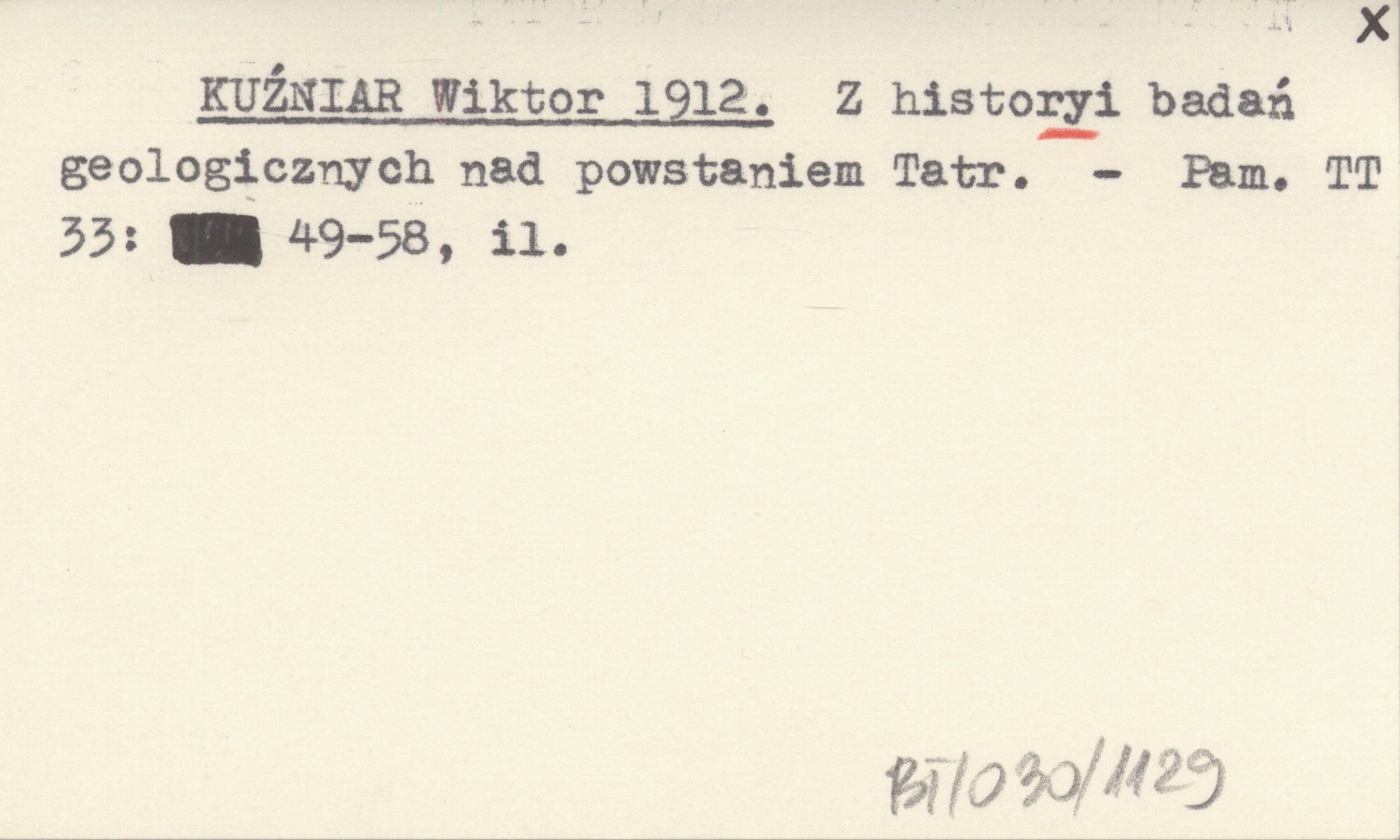 KUŹNIAR Wiktor 1912 Z historyi badań geologicznych nad powstaniem Tatr.
