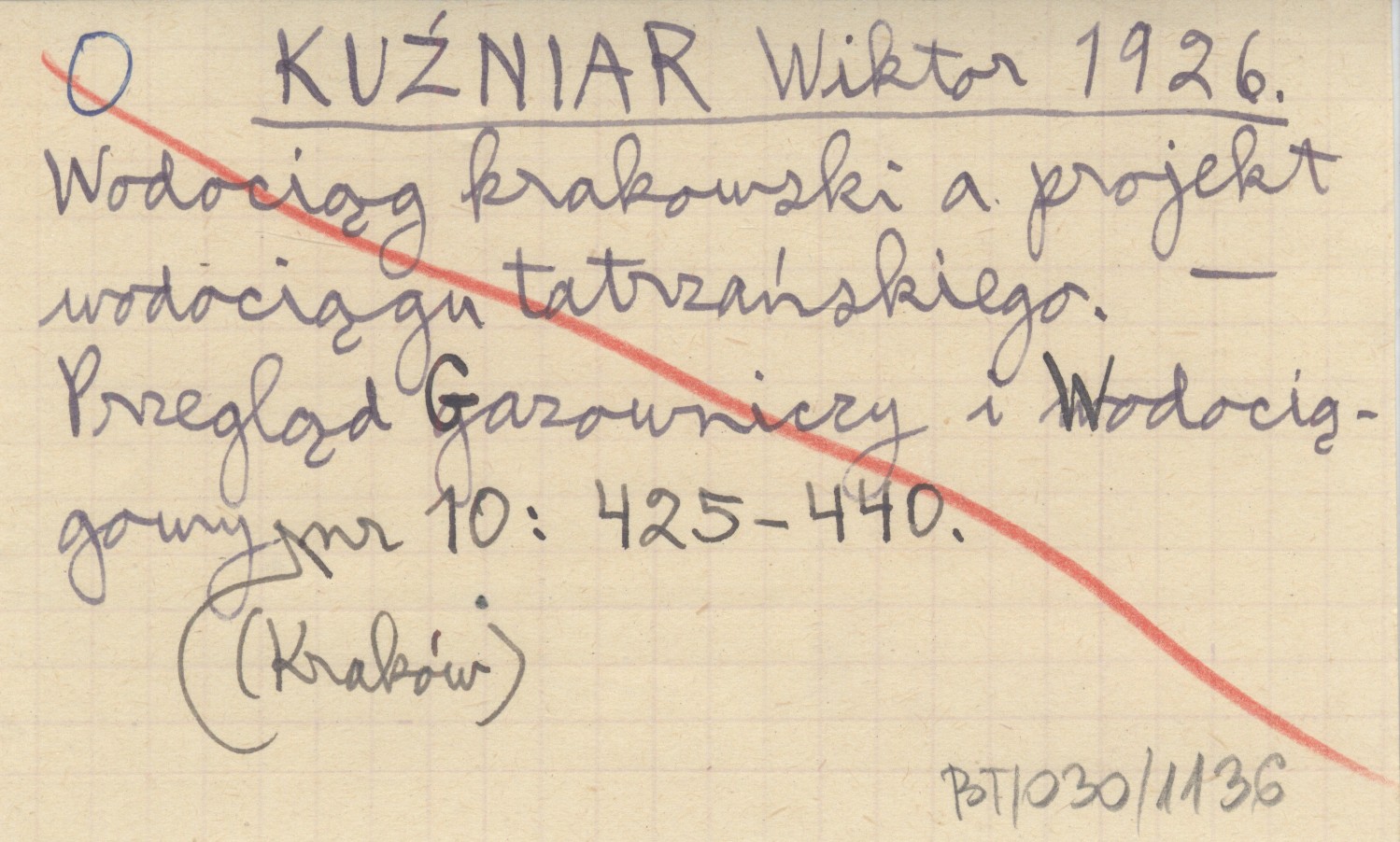 KUŹNIAR Wiktor 1926 Wodociąg krakowski a projekt wodociągu tatrzańskiego.