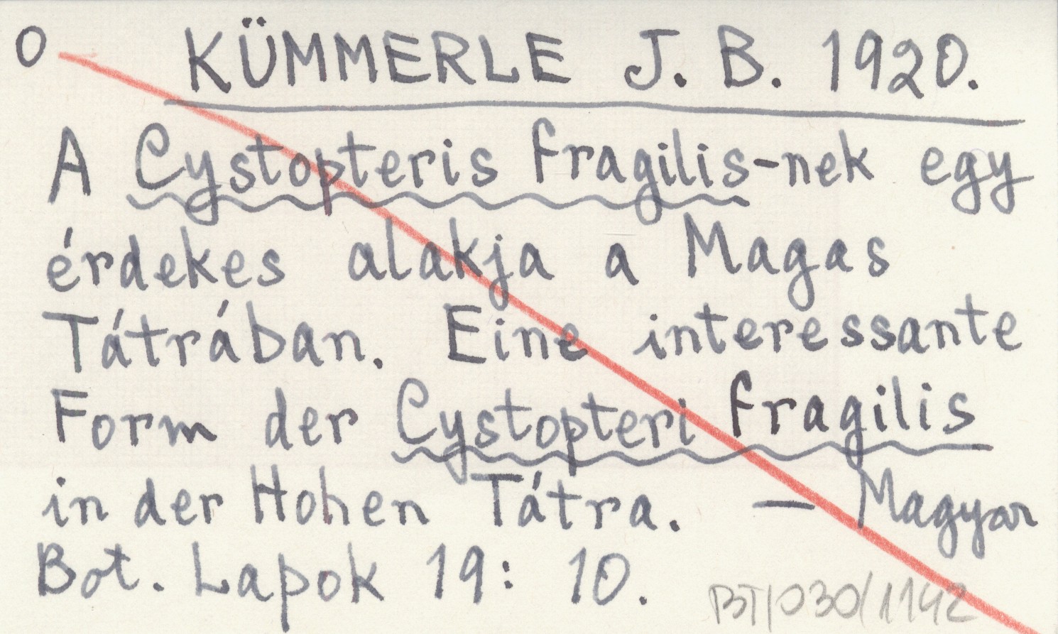 KÜMMERLE J. B. 1920 A Cystopteris fragilis-nek egy érdekes alakja a Magas Tátrában. Eine interessante Form der Cystopteri fragilis in der Hohen Tátra.