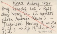 KVAS Andrej 1959 Prvý letecký deň v Spiąskej Novej Vsi. (Z pamätí pilóta Andreja Kvasa).