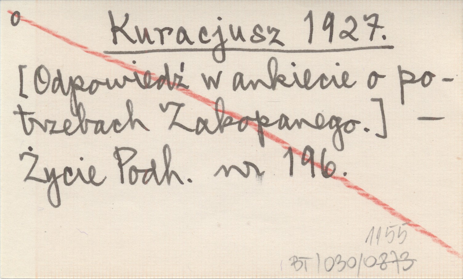 Kuracjusz 1927 [Odpowiedź w ankiecie o potrzebach Zakopanego.]