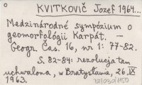 KVITKOVIČ Jozef 1964... Medzinárodné sympózium o geomorfológii Karpát.