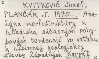 KVITKOVIČ Jozef PLANČÁR, J. ; 1975... Analýza morfoątruktúry z hµadiska súčasných pohzbových tendencií vo vz»ahu k hlbinnej geologickej stavbe Západných Karpát.
