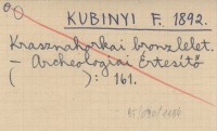 KUBINYI F. 1892 Krasznahorkai bronzlelet.