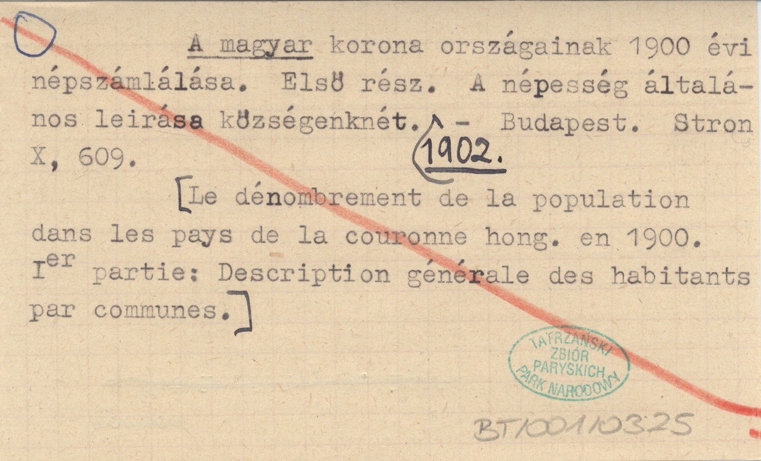 Budapest , Cz. 1: X, 609 s. [Le dénombrement de la population dans les pays de la couronne hong. en 1900. Ler partie: Description générale des habitants par communes.]
