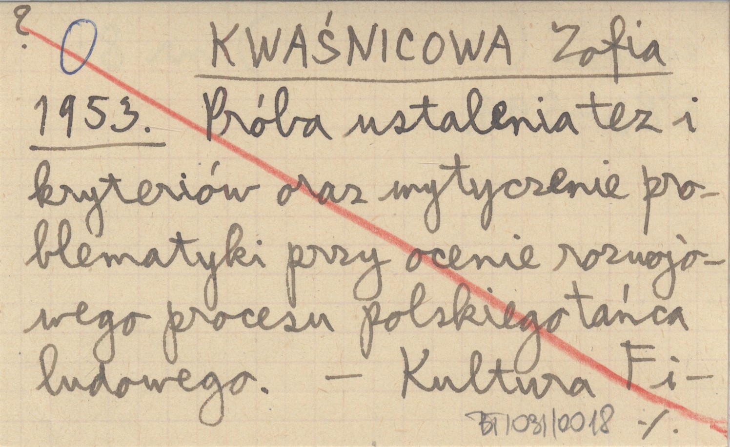 KWAŚNICOWA Zofia 1953 Próba ustalenia tez i kryteriów oraz wytyczenie problematyki przy ocenie rozwojowego procesu polskiego tańca ludowego.