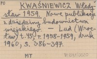 KWAŚNIEWICZ Władysław 1959 Nowe publikacje z dziedziny budownictwa wiejskiego.