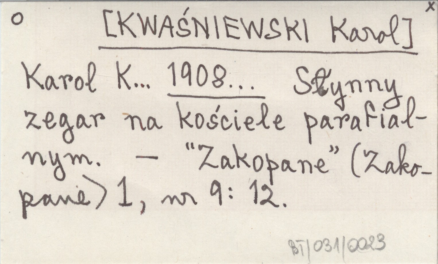 Karol K... [KWAŚNIEWSKI Karol] 1908... Słynny zegar na kościele parafialnym.