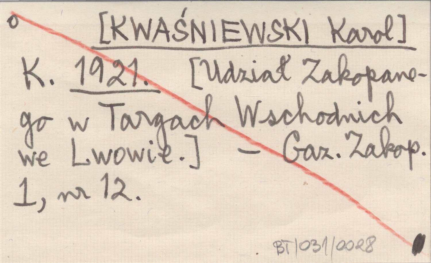 K. [KWAŚNIEWSKI Karol] 1921 [Udział Zakopanego w Targach Wschodnich we Lwowie.]