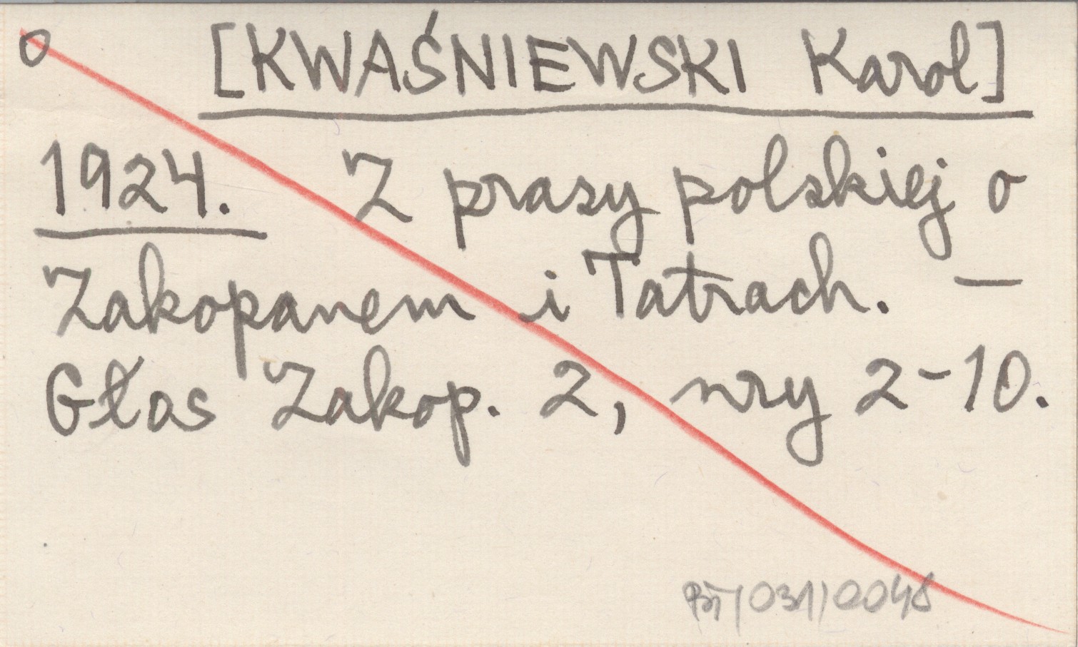 [KWAŚNIEWSKI Karol] 1924 Z prasy polskiej o Zakopanem i Tatrach.