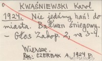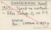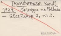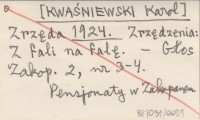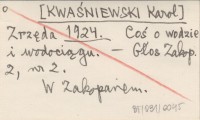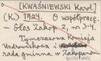 (K.) [KWAŚNIEWSKI Karol] 1924 O współpracę.