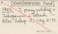 [KWAŚNIEWSKI Karol] 1924 Z prasy polskiej o Zakopanem i Tatrach.