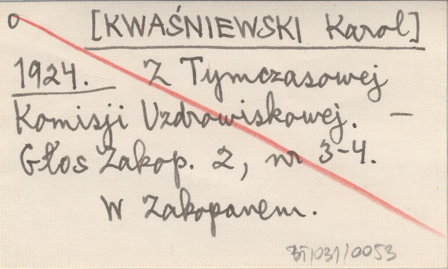 [KWAŚNIEWSKI Karol] 1924 Z Tymczasowej Komisji Uzdrowiskowej.