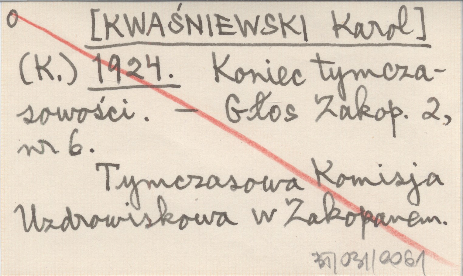 (K.) [KWAŚNIEWSKI Karol] 1924 Koniec tymczasowości.